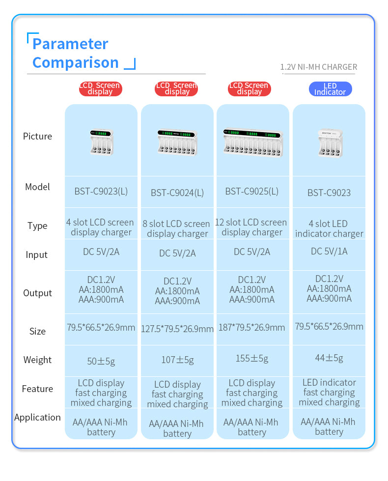 - 適用產品 : AA/AAA 1.2V 鎳氫(Ni-MH)充電池