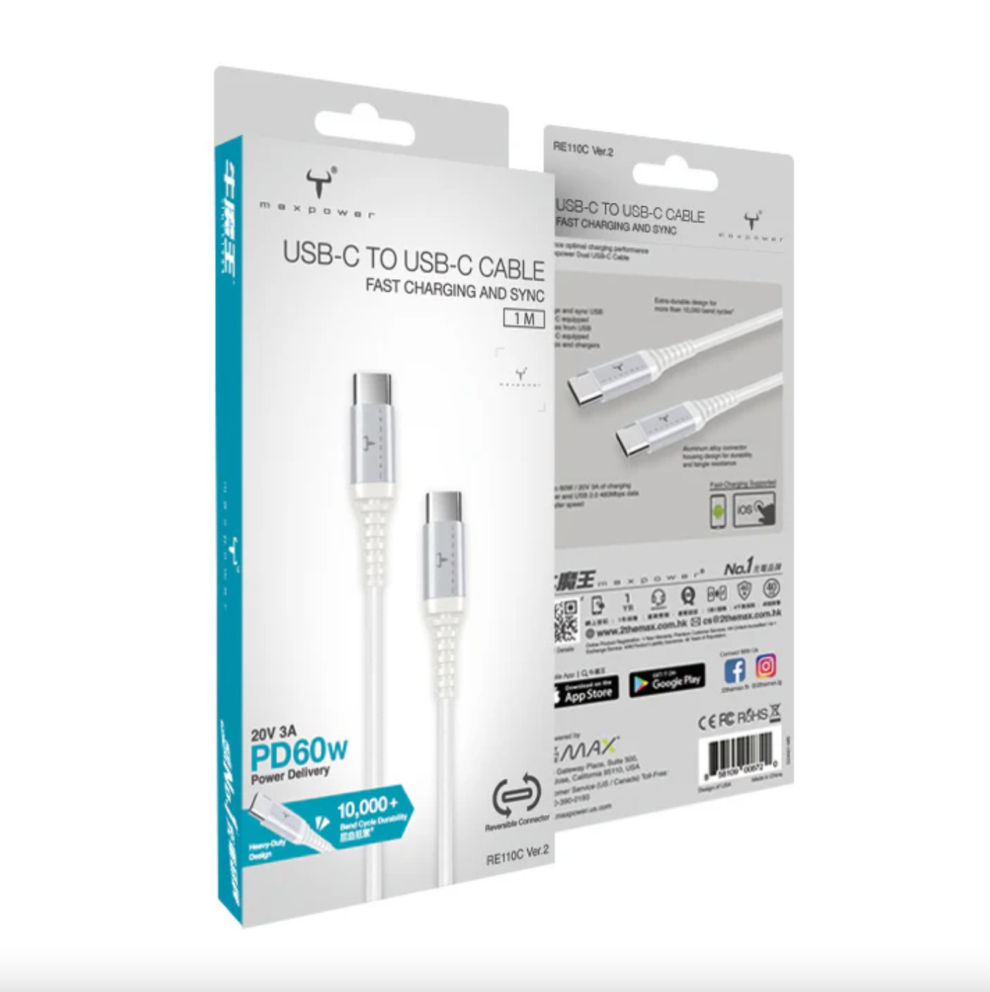 牛魔王 - RE110C USB-C 至 USB-C 快速數據充電線 PD 60W (白色)