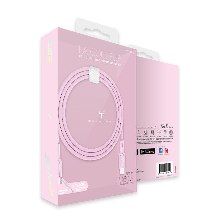 牛魔王 - YY110C 60W USB-C 至 USB-C 快速充電線 (粉紅色)